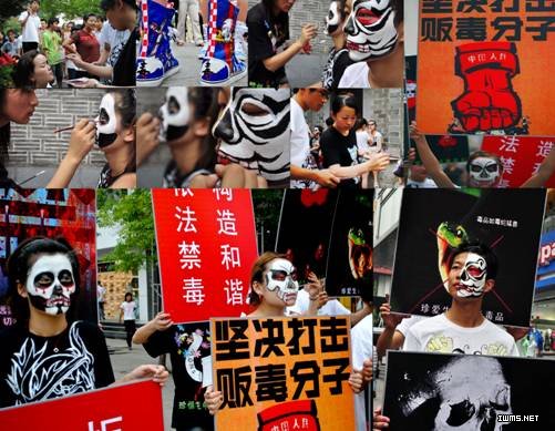 6月23日在合肥淮河路步行街上,电子商务09级装饰艺术设计专业的学生在高静老师带领下,开展以“珍爱生命、远离毒品”为主题的行为艺术活动。他们利用自身所学的专业技能,通过现场描绘禁毒脸谱,手绘T恤,进行展板宣传的艺术创作方式,号召人们远离毒品,珍爱生命,以迎接6月26日的国际禁毒日。此次活动受到了新华社安徽分社、安徽日报社、合肥日报社等多家媒体的关注与报道,社会反响较好。
