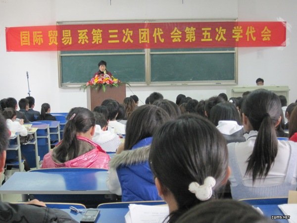 4月28日下午,国际贸易系在5302教室隆重召开第三次团员代表大会、第五次学生代表大会,系党总支书记杨建平和谢锋、陈楚岚、宁蓓三位老师作为教师代表以及国贸系145名学生代表出席了大会。 杨建平书记为大会致辞,对我系团员青年同学们提出两点希望:一是要坚定信念,锤炼品德,高举团旗跟党走;二是要开拓创新,奋发有为,与时俱进创佳绩。她希望全系青年都能以饱满的热情、负责的态度投入到学习和工作中,做到主动学、敢于学、善于学、勤于学,为我院的示范学院创建工作尽一份责任,为自身成长创一片天地。