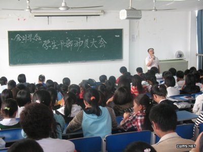 中午12:30,会计学系学生干部动员大会准时召开,新一届学生会200多位成员济济一堂。陶书记在会议上强调态度决定一切,要端正学生干部的工作态度,要有上进心和实践力。同时,他督促各学生干部要改变理念,改变高中时一贯的单向学习,要向多方面发展。从小事做起,从现在做起,以维护寝室的洁净和整洁为立足点,以为同学服务和无私奉献为目标。最后,陶书记引用了毛泽东的话“人的问题是决定一切问题的最基本问题,而人的认识是人的问题的基本”。他要求我们要深刻认识到自己的不足,树立严谨端正的工作态度,不断地提升自己。会议在热烈的掌声中结束。