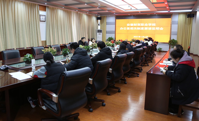1月6日上午,办公室就近期印发相关制度召开解读说明会,各部门、二级院部相关人员参加会议。