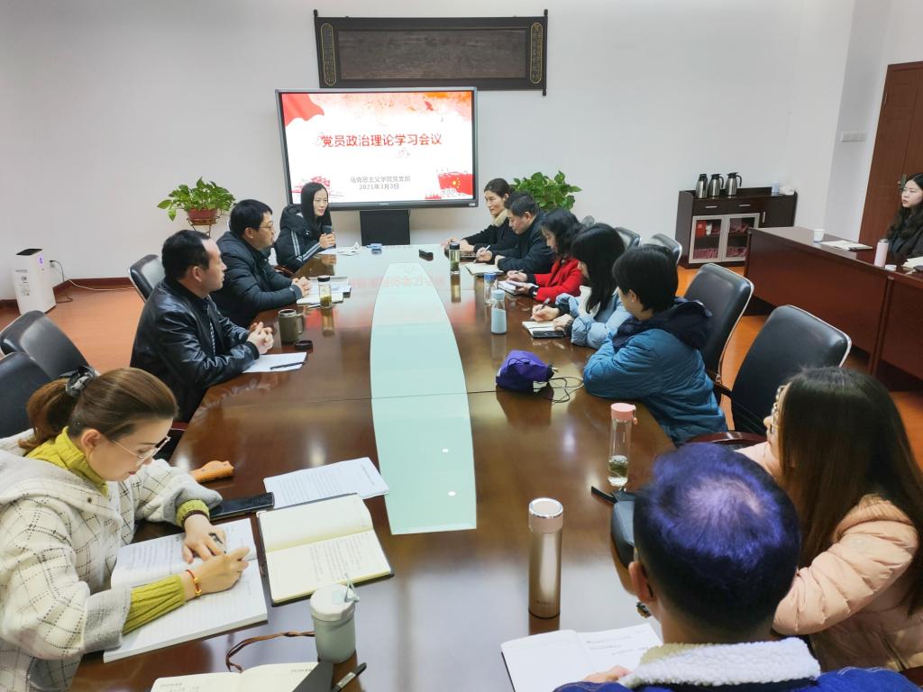 3月3日下午,马克思主义学院组织全体党员于行政楼第三会议室召开政治理论学习会议,党支部书记王良斌主持会议,支部副书记崔学明和全体党员教师参加学习。