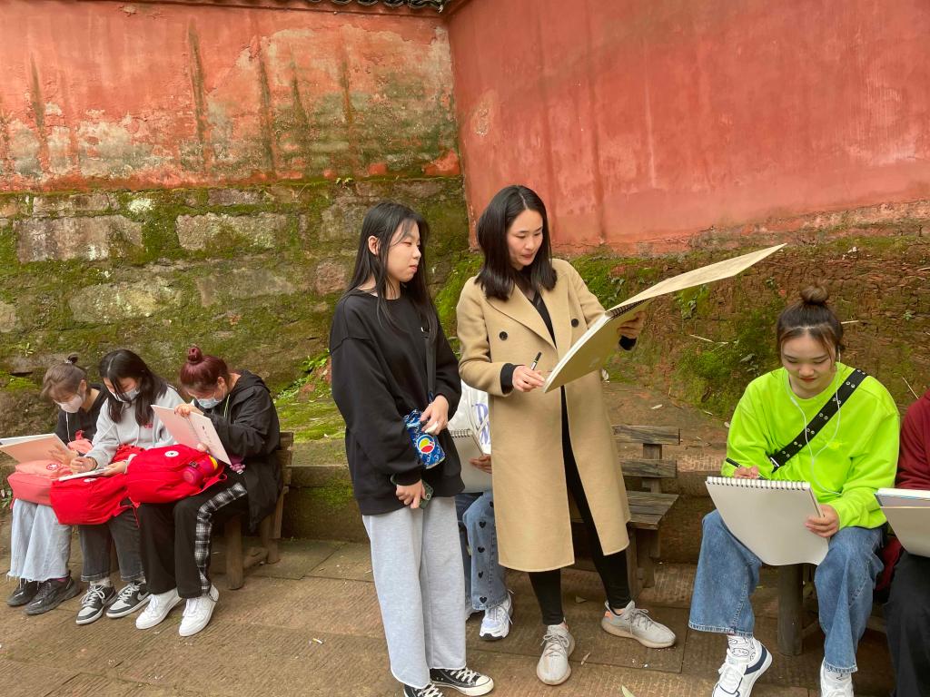 此次写生实习实践对于学生们而言,是一次提高专业创作与艺术修养水平的好机会,自然文化遗产、风光风景、古建筑群、当地人物、植物花卉和徽州美食都成为学生们创作的对象。学生们完成当日的写生作业之后,老师及时对作品进行点评指导。
