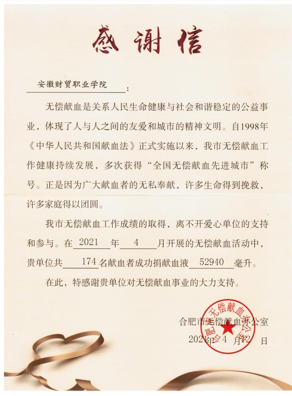 4月9日至11日,学院团委、青年志愿者协会开展了“无偿献血,用爱心守护生命”为主题的无偿献血公益活动,共有174名献血者成功献血52940毫升。