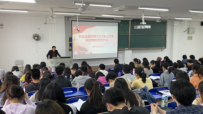 4月21日下午,财会金融学院在6103教室召开2021年上半年接收预备党员大会,学院62名师生党员及114名发展对象参会,大会由党总支副书记、学生党支部书记李健主持。