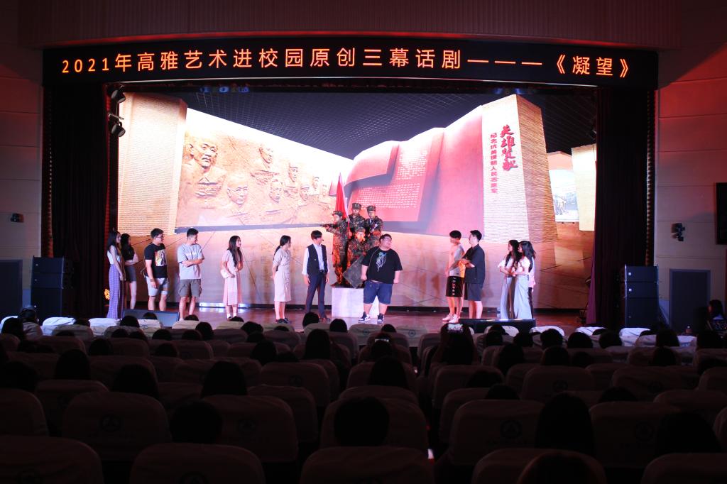 6月21日晚,由安徽省教育厅、安徽大学主办的“2021年高雅艺术进校园——原创三幕话剧《凝望》”演出活动在学校学术报告厅隆重举行,学生处、团委、二级院部团总支负责人与现场300余学生共同观看了演出。