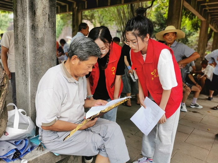 7月14日至15日,同学们前往歙县斗山社区,围绕歙县当地的特色产业规模、发展状况,以及如何融合地方特色资源更好助推乡村振兴等问题开展调研。高温酷暑阻挡不了队员们志愿服务的决心与脚步,队员们热情礼貌、积极主动指导当地居民填写问卷,解答村民的疑问,了解歙县村民对特色产业的发展建议,获取了大量的调研数据。活动期间,为提高群众安全防范意识,增强群众防电信诈骗能力,队员们充分发挥财务和金融专业知识优势,围绕电信诈骗的种类、惯用手段及防范常识,以及电信诈骗防骗技巧、电信诈骗常用语、电信诈骗常用行为等向村民们进行详细宣传讲解,提高了广大村民们的防范意识。