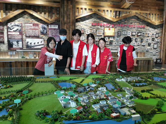 18日上午,孙阳阳带领团队成员前往杨庙镇刘云峰烈士馆进行学习。据了解,刘玉峰烈士纪念馆于2010年建成,汇集了以刘云峰为首的杨庙镇仁人志士的主要事迹,以“永恒的怀念”“辉煌的丰碑”“烽火的回忆”“血染的风采”为四大展陈板块,同学们在学习过程中了解建党以来杨庙地区的仁人志士为新中国的成立敢于抛头颅洒热血、不畏牺牲、奉献自我的英雄事迹,是他们用生命和鲜血谱写了一曲曲辉煌壮丽的战歌。同时,每天傍晚,团队成员分工与农场导师何业宁一起前往马郢周边的各村镇放映建党100周年红色主题电影,影片讲述了老一辈革命先烈为救人民于水火之中的英勇事迹,展现了中国共产党成立100周年来的辉煌历程。
