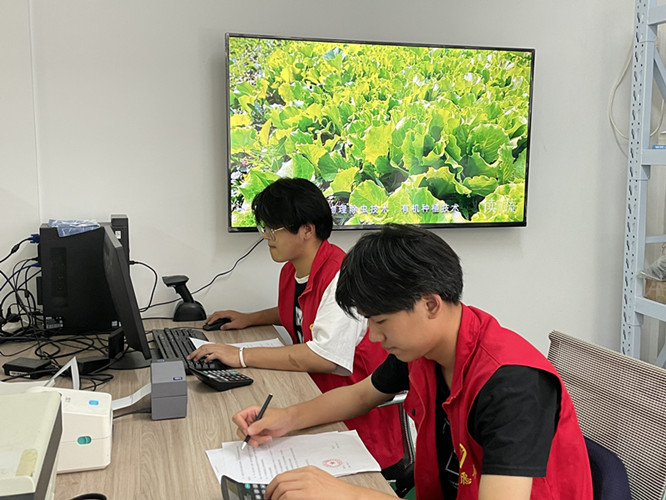 团队成员跟随农场导师了解马郢农场的种植现状,农场拥有大棚和露天两种种植模式,农场导师介绍了马郢智慧农场操作系统,主要针对大棚种植采取了半自动化的水肥系统,深入了解传统农业和现代智慧农业的区别,以及农场未来的发展方向。孙阳阳表示,马郢村当下的智慧农场系统是长丰县最为先进的系统,其运营流程主要是在追溯平台上进行登录,对农场一些相关的产品投送上线,最终会形成从产品的选择到打包发货一条完整的作业流水线,但还有很多地方有待完善,希望青年志愿者能够助力智慧农场的建设和发展,使智慧农场系统更加完善。