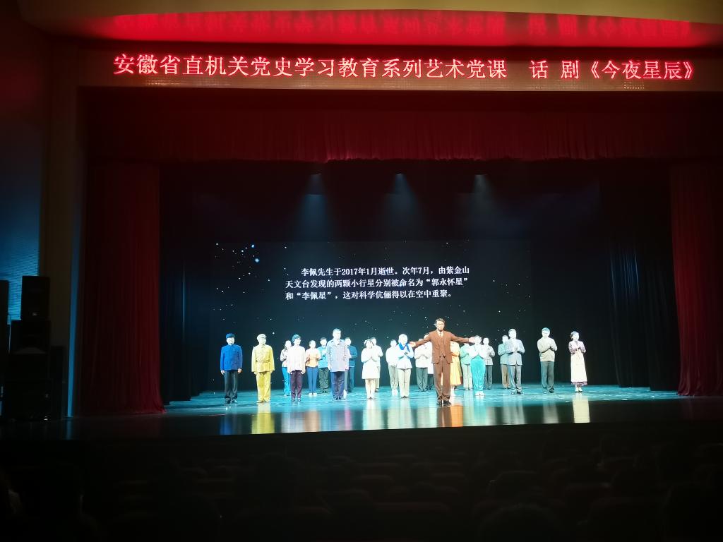 11月4日下午,校团委组织180名团员青年前往安徽艺术剧院参加由省直团工委、省直工委讲师团联合开展的“艺术党课进校园”活动,观看艺术党课《今夜星辰》。