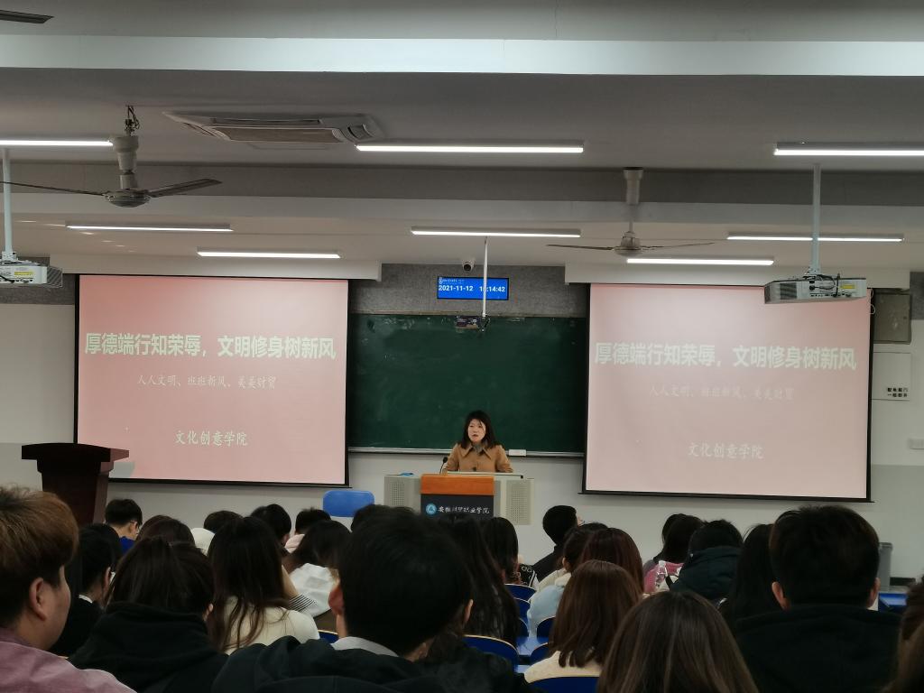 为响应学校《关于进一步加强学生校园文明规范的通知》,切实提升学生文明素养,更好地开展后续文明教育工作,文化创意学院于11月12日中午召开了“厚德端行知荣辱,文明修身树新风”为主题的动员大会。文化创意学院专职辅导员、学生秘书、团学干部与入党积极分子到场参会。