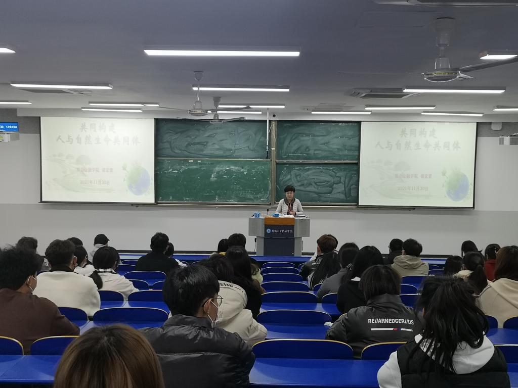 生态兴则文明兴,绿水青山就是金山银山。财会金融学院党总支书记胡宏萱以“共同构建人与自然生命共同体”为题,深入分析当前全球环境治理面临的现实之困和挑战,全面阐述了国家对推动构建人与自然生命共同体的理念和方案,深刻表明了国家在做全球环境治理行动派的担当和责任。同时,她号召广大师生,作为青年一代,要争做保护环境的践行者、宣传者和守护者,敢于同一切破坏环境的行为作斗争,带动更多的人主动参与到保护环境的行列中来,勇于担当,勠力同心,以实际行动为构建人与自然生命共同体作出贡献。