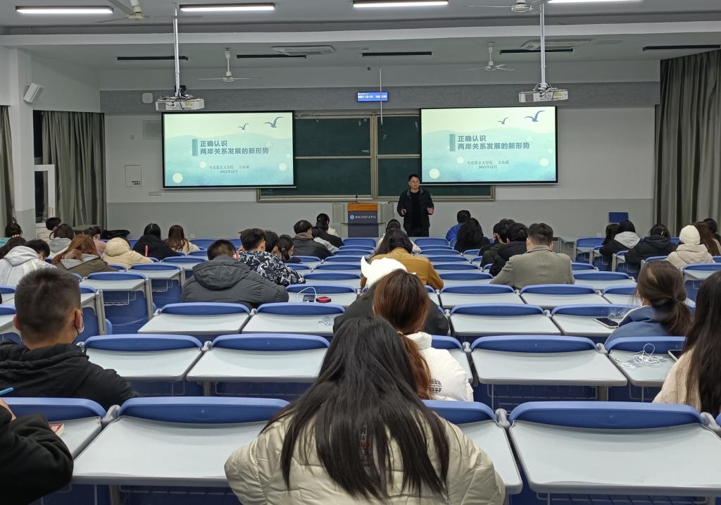 《形势与政策》报告会,既是思政理论课程的创新之举,又是老师走进学生、深入了解青年思想的难得机会,对学校贯彻落实立德树人根本任务,助推青年学生成长成才具有重要意义。通过授课,同学们纷纷表示,老师们的报告会内涵丰富,信息量大、讲解生动,深入浅出,让大家受益匪浅,作为新时代青年,要进一步明晰自身的历史使命与责任担当,学好真本事、练就真本领,以“硬核”能力在中华民族伟大复兴中贡献自己的青春力量。(供稿:郭清  审稿:王良斌)