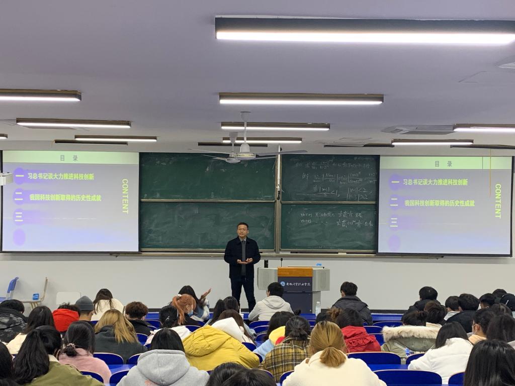 科技是国家强盛之基,创新是民族进步之魂。文化创意学院党总支书记张克以“科技自立自强是国家发展的战略支撑”为题,系统回顾了我国科技创新所取得的历史性成就,充分引导学生深刻领会科技自立自强的重大意义,准确把握科技自立自强的战略要求,不断提升自身的科学素养和创新意识,为科技自立自强不断注入新的动力,为全面建设社会主义现代化国家奠定坚实基础。