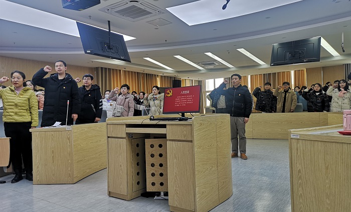 12月28日中午,财会金融学院学生党支部在A502教室召开预备党员转正暨新党员宣誓大会,会议由学生党支部书记李健主持,党总支书记胡宏萱及支部党员师生参会。