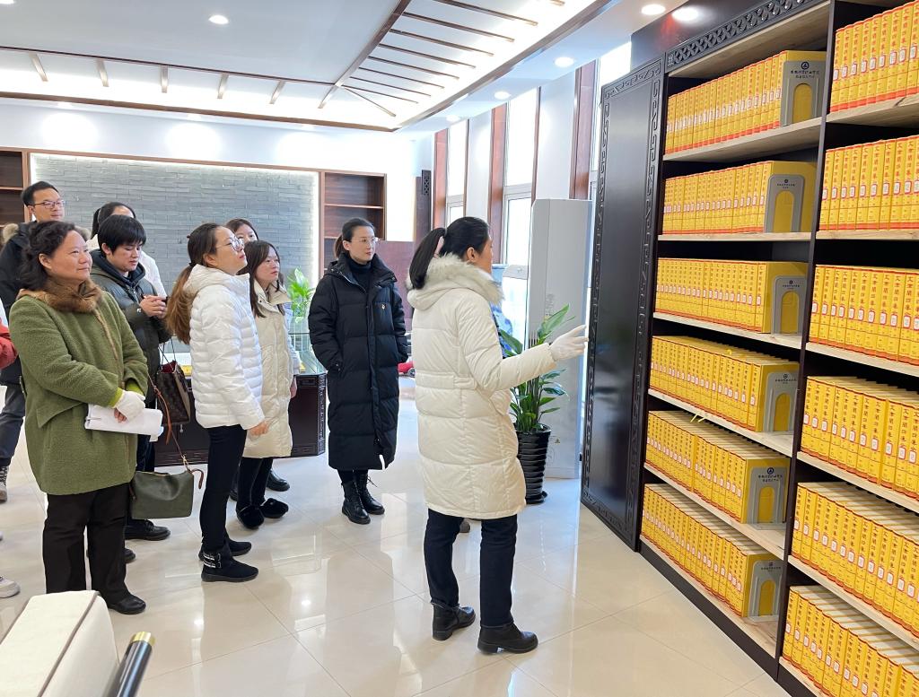 图书馆老师张晓为我院全体党员介绍了图书馆精品书库中珍贵典藏的相关情况,并就图书版式、行款、用料、装帧、采购和保存环境等方面和马院的党员同志们进行了深入交流。图书馆精品书库中入藏了国家重点出版物国家图书馆出版社仿真影印版《永乐大典》、商务印书馆文津阁《四库全书》、《点校本二十四史》国庆七十周年纪念珍藏版等数千册传世文献经典。马克思主义学院党员老师们在馆内驻足参观、小心翻阅着这些传世著作,从泛黄的书页中体察中国古代历史中的风云变化,感受饱经沧桑的那一份历史的厚重感,不时地发出赞叹,党员同志们表示此次参观活动加深了对中华历史文化的认知和理解,增强了文化自信心和自豪感,陶冶了情操,净化了心灵。