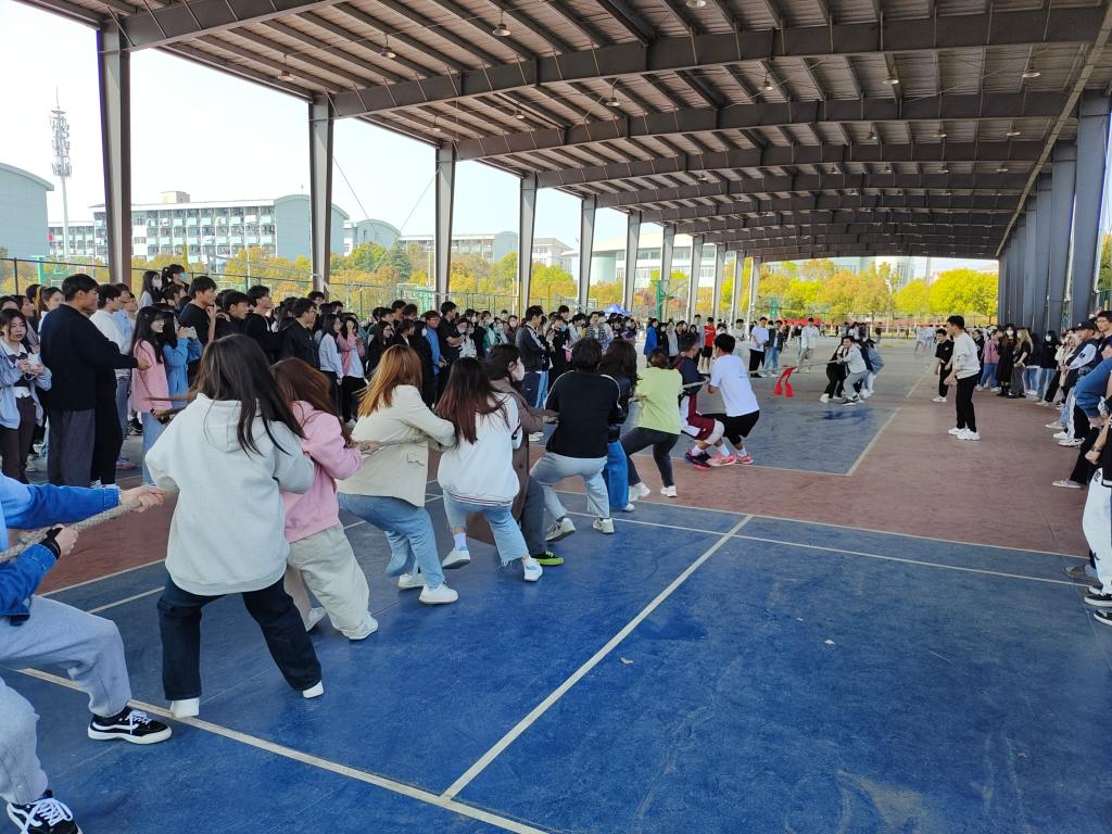 此次比赛各21级班级及院部学生会各组建一支16人的参赛队伍,男女各8人,比赛分为初赛、晋级赛、半决赛、决赛。比赛现场,各参赛队伍蓄势待发。一边的队员摆出了随时发力的姿势,身体微微向后倾,势在必得另一边的队员同样向后倾倒,力争得胜。伴随着发令声响“一、二、一、二”,运动员们一齐发力,口号声、加油声、呐喊声交织在一起,红布条在中间线上左右晃动,比赛场面激烈异常。各代表队的班级同学热情高涨,齐喊口号为自己的队伍加油助威。