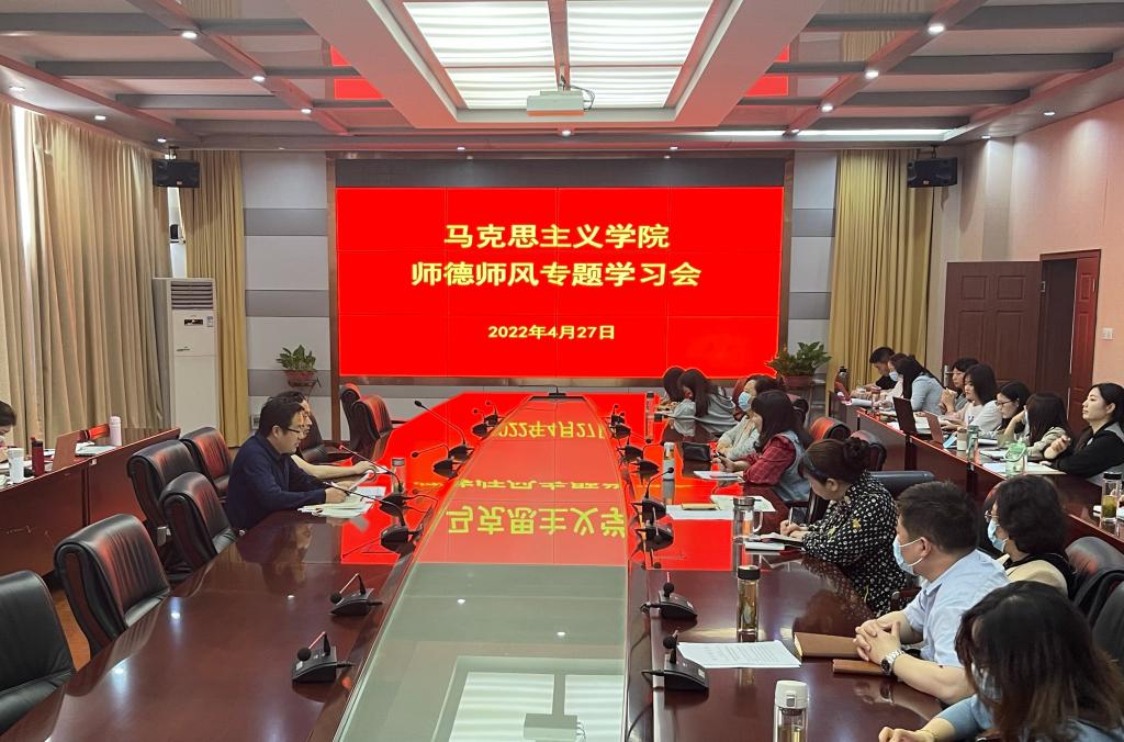 4月27日下午,马克思主义学院在学院会议室开展师德师风专题学习,扎实推进教师队伍建设,建立健全师德师风长效机制。张少兵以《从〈西游记〉中寻找智慧,与青年教师谈成长的几个问题》为题,向全体思政教师作了一场学习报告。