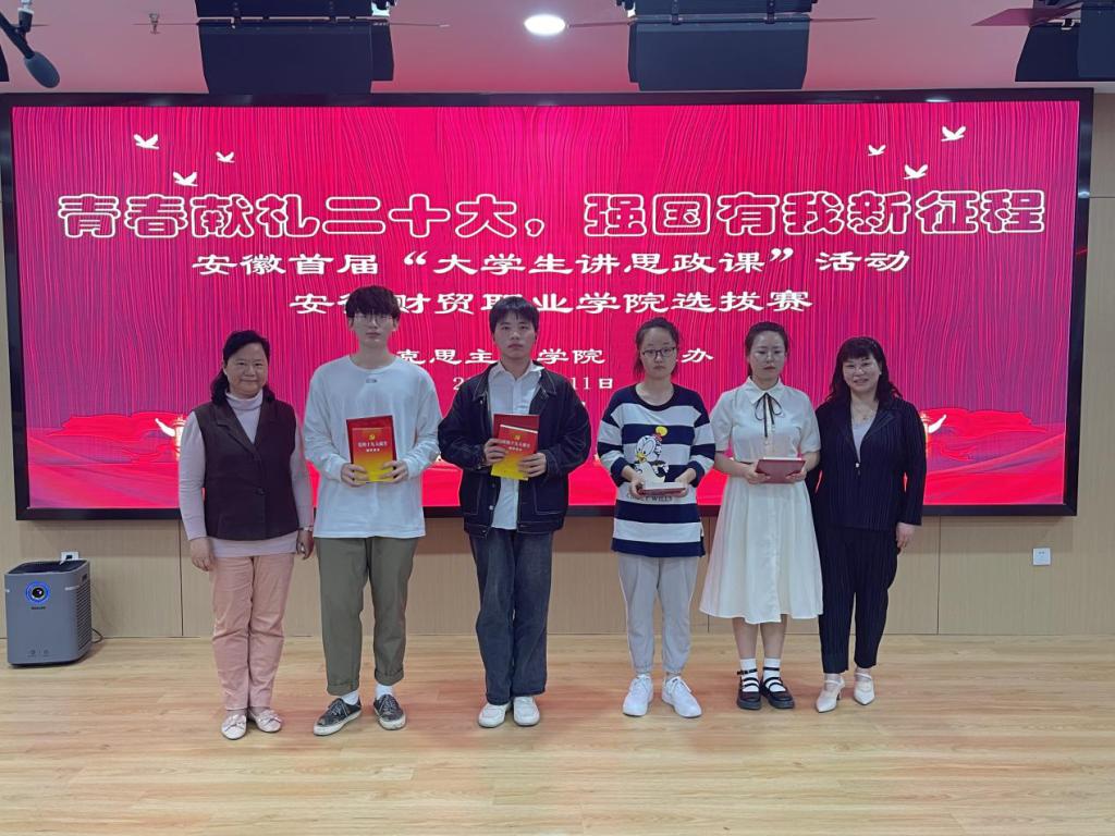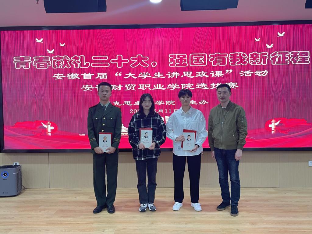 获得本次比赛一等奖的团队是:财会金融学院张玟玟团队(指导教师洪妮)、财会金融学院熊一鸣团队(指导教师储锐)、财会金融学院盛况团队(指导教师王玲玲),一等奖选手将代表学校参加安徽省首届“大学生讲思政课”片区比赛。(供稿:孙中天 审稿:张少兵)