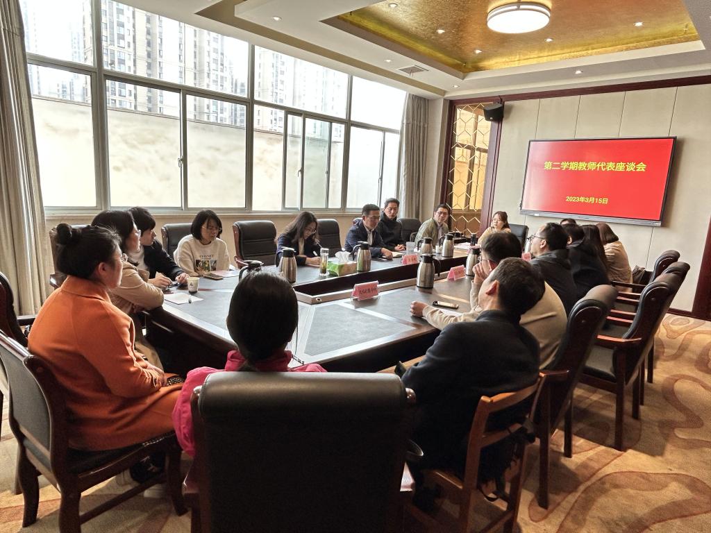 3月15日下午,教务处在行政楼第一会议室召开2022-2023学年第二学期教师代表座谈会,教务处负责同志和二级院部的14名教师代表参会。