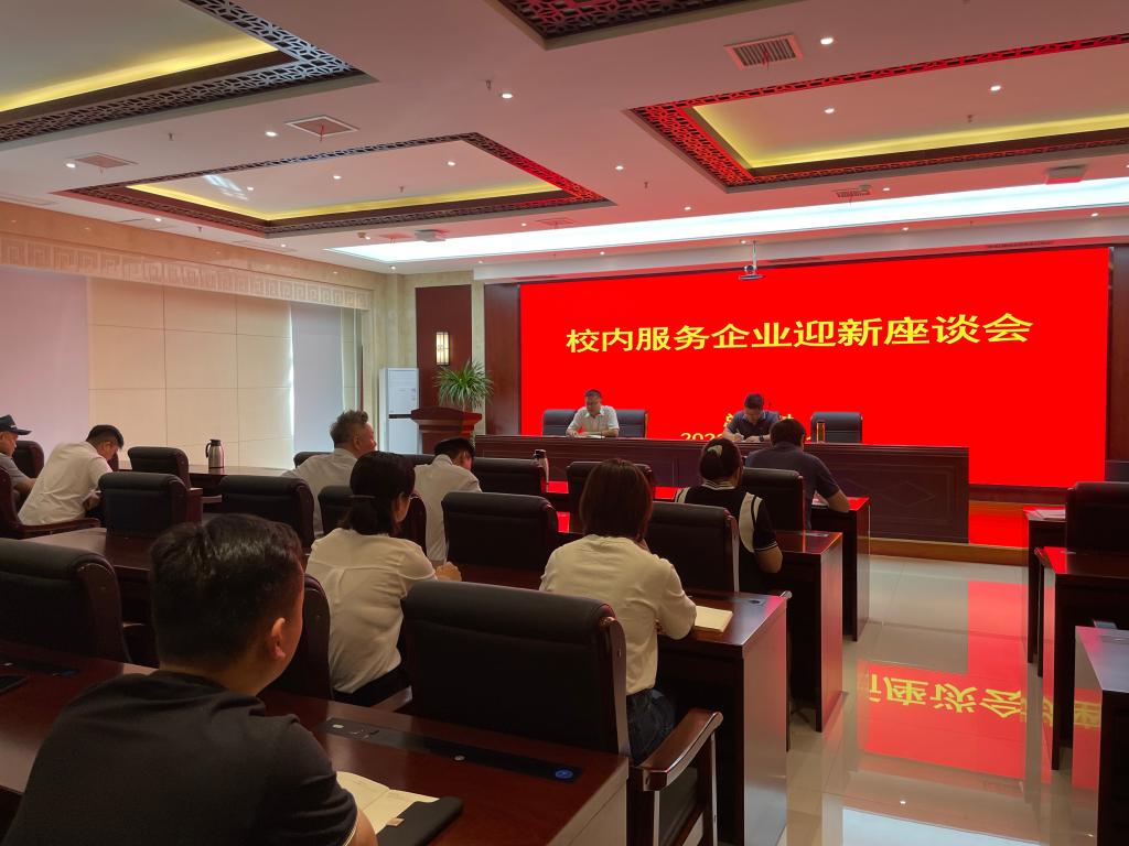 8月31日,在新学期开学之际,总务处召开新学期校内服务企业迎新座谈会,会议由总务处副处长张伟主持。总务处副处长魏立新,总务处服务中心等相关工作人员出席会议。食堂、超市、通讯、浴室、物业等校园企业负责人参加本次座谈会。