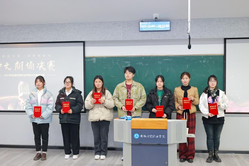 12月4日,校团委在翡翠校区5201教室举办第十七届全省大学生诗文朗诵校园选拔赛。本次比赛以“青春诵祖国,讴歌新时代”为主题,通过诵读方式讲述党的光辉奋斗历程、青年人的爱党爱国信仰、大学生的使命与担当,以诗诵情,以文咏志,展现举世瞩目的伟大成就,倡导热爱国家通用语言文字及中华优秀语言文化的价值观,为开启全面建设社会主义现代化国家新征程积蓄精神力量。