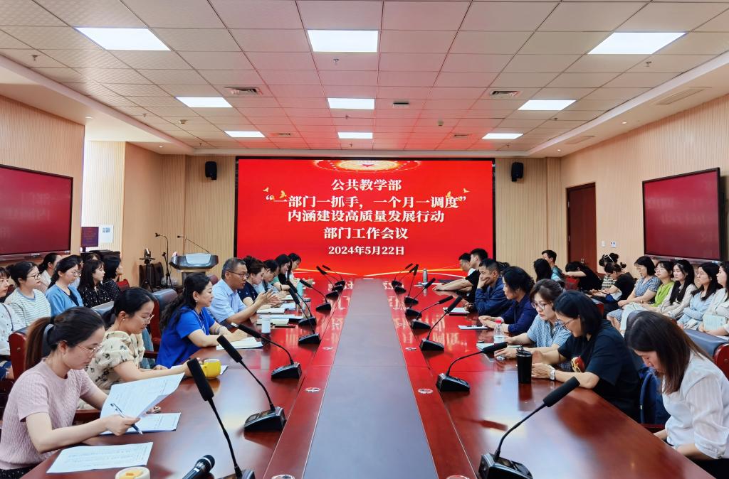 5月22日下午,公共教学部在行政楼308会议室组织召开“一部门一抓手,一个月一调度”内涵建设高质量发展行动部门工作会议。公共教学部党总支书记张克、副书记宋凌云、副主任陈伟及全体教职员工参加了本次会议,会议由张克主持。