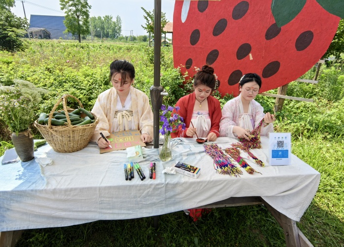6月8日,端午节来临之际,财会金融学院“我为乡村绘风景”志愿服务队走进长丰马郢村,在情圆农场与农旅研学的孩子们一起庆祝端午节。