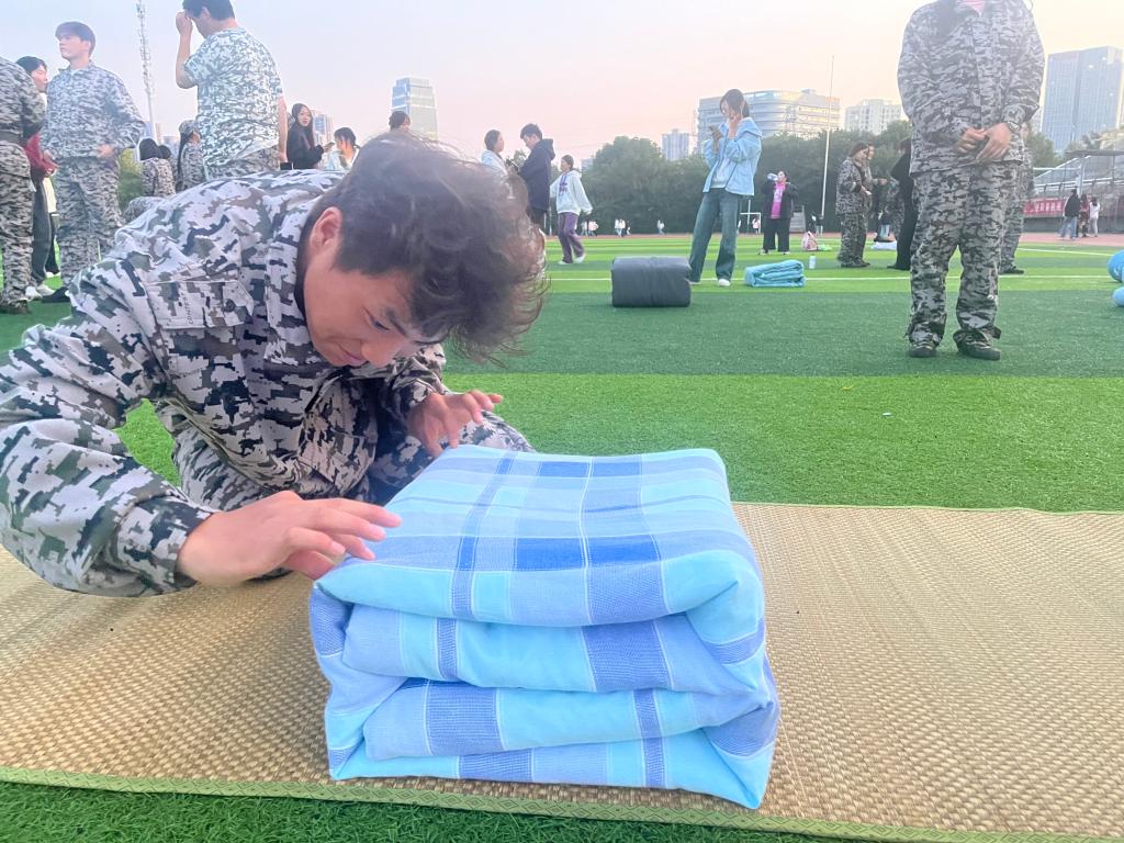 叠军被比赛共30名选手参加,评委老师从被子的平整度、线条的流畅度、整体的审美韵味以及叠放的速度、时间等多个维度,进行严格的评判与打分。五人六足默契赛共有15个班级代表队参加,比赛中,各代表队拧成一股绳,争分夺秒、相互搀扶、相互鼓励、齐心协力,留下了激扬拼搏的身影。