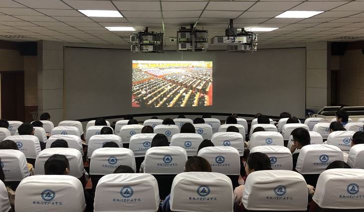 4月30日,纪念五四运动100周年大会在人民大会堂举行。校团委组织团干部、学生团员代表共100余人集中收看纪念大会直播,认真学习习近平总书记在大会上的重要讲话。