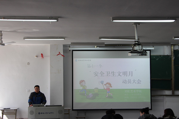 3月5日中午,宾虹艺术学院在6103教室召开了学院第十一个安全卫生文明月动员会,宾虹艺术学院党总支副书记张伟、办公室主任、团总支干事、学生秘书及全体专职辅导员出席会议。全体2017级学生,2016级部分学生会干部参加了会议。