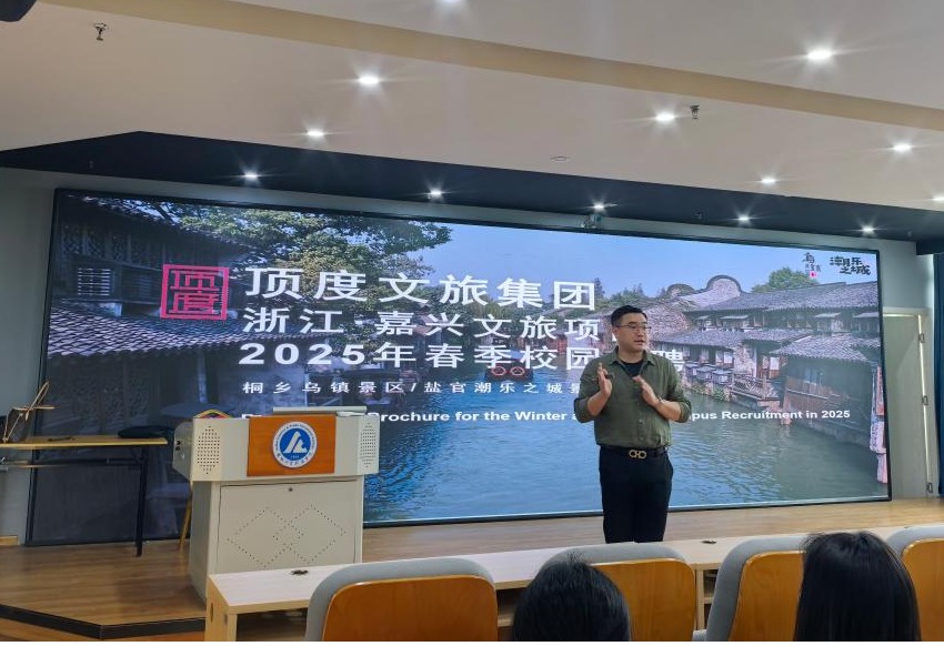 2023级旅游管理、酒店管理与数字化运营、茶艺与茶文化专业的同学们认真聆听企业宣讲,并就岗位要求、实习时长、晋升空间等具体细节,与企业代表展开互动沟通。