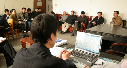 会议由计算机工程系主任夏德洲主持,夏主任首先报告了参加十堰职业技术学院创省级示范性高职院校工作考察组于2007年10月28日至11月4日分别对宁波职业技术学院、常州机电职业技术学院和南京工业职业技术学院进行考察的情况,分专业群方向定位与发展、课程设置、项目课程、工学结合、顶岗实习、校企合作、企业引进、产学研、示范高职、实训基地、师资队伍团队建设、教学质量监控及分配制度等方面,具体详尽的介绍了所考察院校成熟的经验和做法,提出涉及该系在消化吸收考察所见所闻和对口交流的经验和做法,消化吸收先进院校校内实训基地建设的做法,探索具有我院和本系专业特点的工学结合和顶岗的路子,为学生工学结合、顶岗实习、项目课程建设创造硬环境条件,加强师资队伍建设,和进一步加大证书考站建设、加大学生双证书的引导和推广力度、为社会人员考证和培训服务的六点工作思路,标志着计算机工程系以项目课程建设为核心的全方位内涵建设正式启动。全体教师认真聆听了报告,并认真记录,对先进院校的做法表示认同,对信息技术教育的前景充满信心。