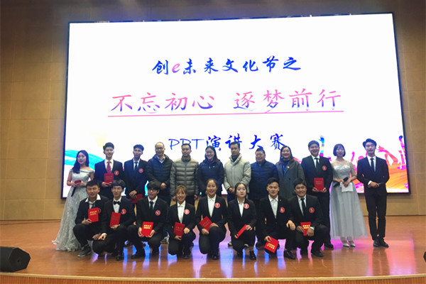 新闻网讯(通讯员赵晨)“青春有得意,也有挫折,只有经过磨难的洗礼,才能迸发出青春的潜力……”12月6日晚,pg娱乐电子游戏官网入口创e未来文化节之“不忘初心,逐梦前行”PPT演讲大赛在会议中心举行,pg娱乐电子游戏官网入口院长刘竹林、党总支书记莫足琴、学工办主任龚国钧、专业带头人范志庆和王家旭老师、美和易思特色专业学工部副主任曹艳及2019级全体师生参与了本次活动。