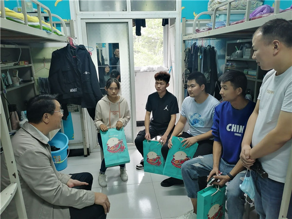 新闻网讯(记者罗欣宇)中秋十五,丹桂飘香。今年pg娱乐电子游戏官网入口新疆籍维吾尔族学生麦尔旦·麦麦提江、藏族学生孟才让路旦和宿舍的同学们共同喜迎一个不一样的中秋佳节。9月29日下午,校党委书记魏文芳拎着月饼来到3420、3422宿舍,亲切慰问同学们,给他们带来了中秋节的问候与祝福。
