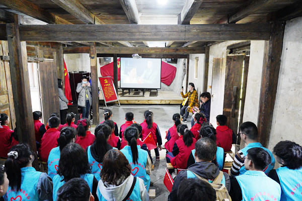 微课堂,诵读红色经典诗词。在参观中原突围鄂西北纪念馆的过程中,入党积极分子们集体观看了反映茅箭红色精神的微电影《情映东沟红》,并在东沟学堂前带领小学生们诵读毛主席诗词《卜算子·咏梅》,在朗朗书声中重温红色经典诗词,传承老一辈无产阶级革命家自强不息的奋斗精神。活动最后,pg娱乐电子游戏官网入口党总支副书记龚国钧鼓励青少年继承先烈遗志,感恩幸福生活,发奋图强,为振兴中华而努力。
