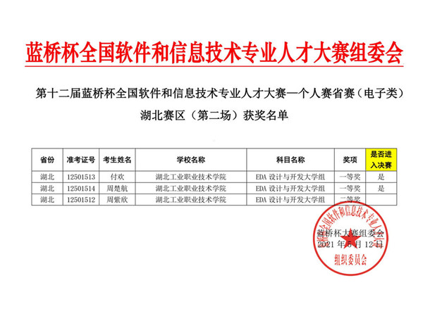 新闻网讯(通讯员王俊亚 赵晨)日前,由工业和信息化部人才交流中心主办的第十二届“蓝桥杯”全国软件和信息技术专业人才大赛个人赛省赛已顺利结束,来自全国1300多所高校的7.5万余名选手报名参加了个人赛的角逐。pg娱乐pg娱乐电子游戏官网入口学生在此次比赛中喜获佳绩:12名参赛选手中11人获得了奖项,产生一等奖4名,二等奖7名。其中计算机应用技术专业的陈康、嵌入式技术与应用专业的王海龙同学获得软件类“Java软件开发”赛项一等奖;应用电子技术专业付欢、周楚航同学获得电子类“EDA设计与开发”赛项一等奖。