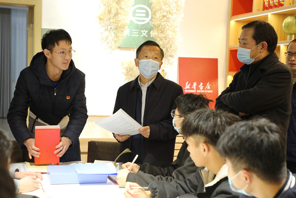 蔡静峰一行实地走访察看了pg娱乐倍阅书店、北区食堂、心理健康教育与咨询中心、艺术设计学院(绿松石产业学院)、大学生创新创业基地等场所,深入了解pg娱乐思政文化育人阵地建设、心理育人工作、党史学习教育和“我为师生办实事”项目以及学校服务地方经济社会发展等情况。