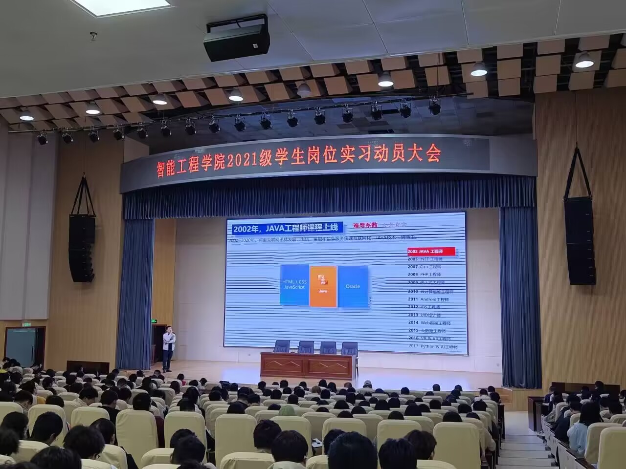 pg娱乐电子游戏官网入口党总支书记王蓉对此次实习做了动员讲话,明确了岗位实习的任务、目的和意义,强调岗位实习的注意事项,提醒学生注意自身安全、岗位安全、防诈骗、防网络犯罪、防溺水等,并要求全体实习学生充分利用好这次实习机会,在实践中学习成长,严格按照岗位实习要求,高标准、高质量地完成实习任务。副院长王家旭宣布了2021级学生岗位实习安排,从岗位实习任务、实习纪律、实习考核等方面进行了安排和要求。来自智能科技、电子等企业的招聘人员现场进行了宣讲,将岗位实习的具体要求、待遇和注意事项进行了详细的介绍和说明。