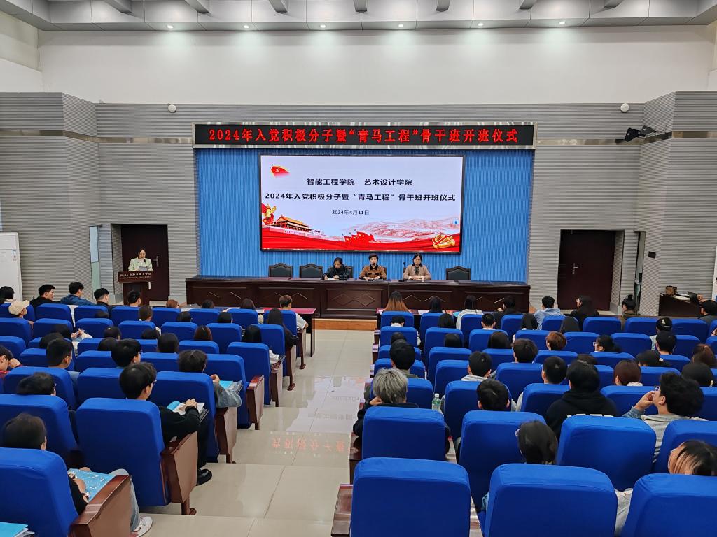 新闻网讯(文/徐丽 图/王官涛)4月11日晚,pg娱乐电子游戏官网入口联合艺术设计学院在学术报告厅开展入党积极分子暨“青马工程”骨干班开班仪式。党校常务副校长、党委组织部(统战部)副部长毕艳琼,pg娱乐电子游戏官网入口党总支书记王蓉、艺术设计学院党总支书记徐薇、pg娱乐电子游戏官网入口专职组织员胡现敏、pg娱乐电子游戏官网入口党总支副书记徐耀勇、艺术设计学院学生党支部书记徐阳及辅导员出席本次会议。101名入党积极分子和68名青马班学员加了此次培训。
