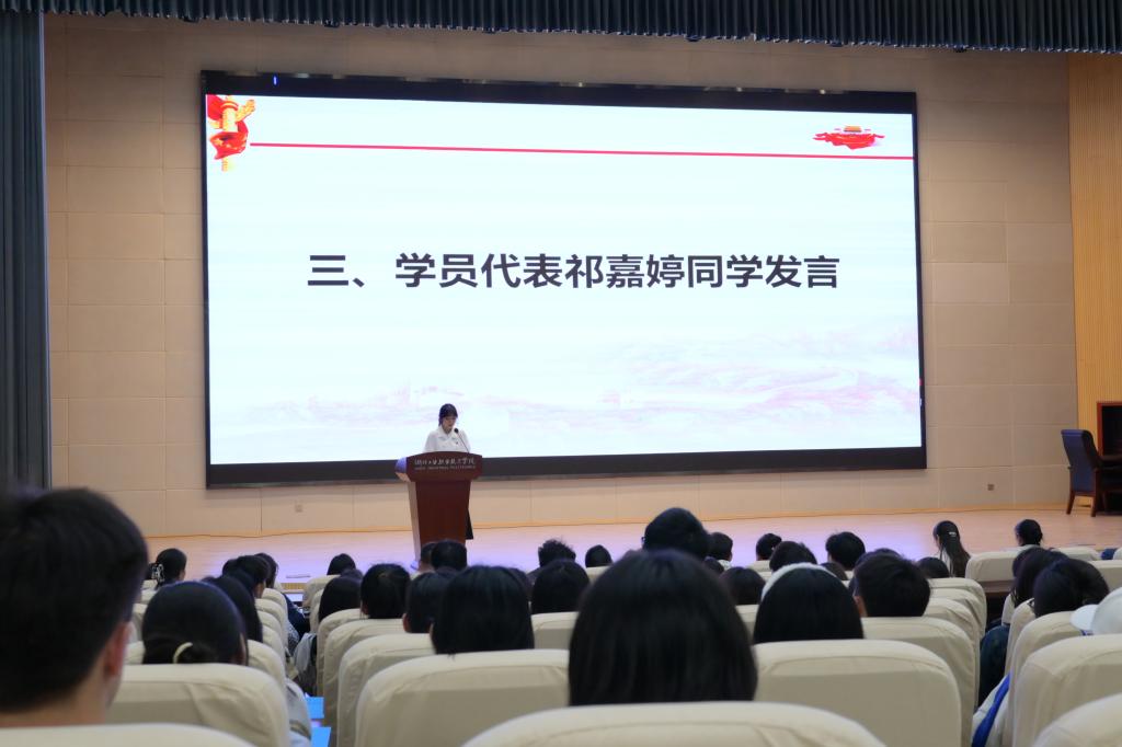 校党委组织部副部长杨波立足学校党建工作发展,为学员指明成长方向,希望大家进一步坚定理想信念,努力成为一名合格的青年马克思主义者。pg娱乐电子游戏官网入口党总支书记王蓉以“信仰·担当·成长”为关键词,勉励学员“既要做理论武装的排头兵,更要当知行合一的示范者”。