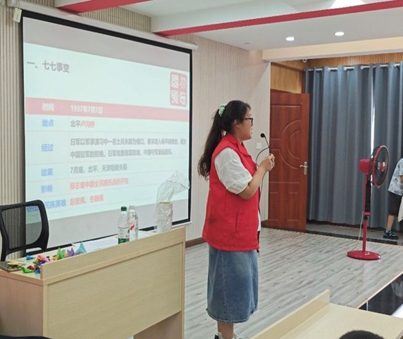 新闻网讯(通讯员 周小丽)“小朋友们,大家知道今天是一个什么特殊的日子吗?”7月7日,正值“七七事变”88周年纪念日,在十堰市茅箭区铁三处社区暑期爱心托管班内,一场以“铭记血泪历史,传承抗争精神”为主题的爱国主义教育活动正式拉开帷幕,吸引了社区近50名儿童参加。