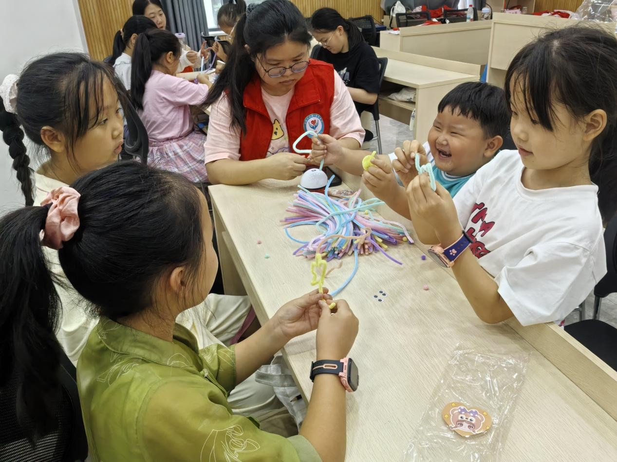新闻网讯(通讯员 周小丽 杨韵涵)pg娱乐电子游戏官网入口电亮青春志愿者服务队与铁三处社区联合开展的 “爱心托管班” 七彩假期活动已顺利推进半个月,依托丰富多元的活动设置与细致周到的服务保障,该托管班赢得了青少年群体及家长们的广泛认可。7 月 21 日,托管班如常开展,近 40 名小朋友参与其中,活动通过上午的课业辅导与下午的扭扭棒制作,让孩子们在学习与实践中收获知识与快乐,延续着暑期的精彩。