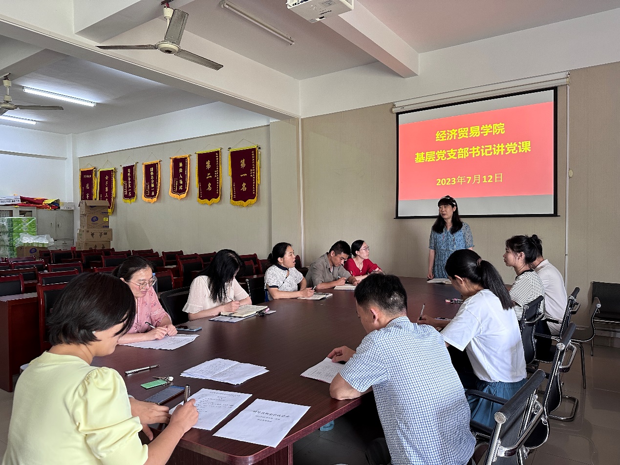 为进一步深入开展学习贯彻习近平新时代中国特色社会主义思想主题教育,进一步推进学院主题教育走深、做实。近日,经济贸易学院学生党支部开展讲党课活动。