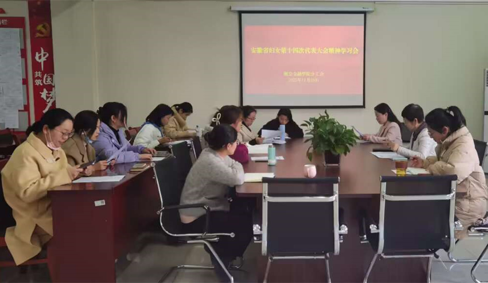 为深入学习宣传贯彻习近平总书记关于妇女儿童工作重要论述、中国妇女第十三次全国代表大会精神和安徽省妇女第十四次代表大会精神,财会金融学院分工会组织开展巾帼学习交流研讨活动,全体女教职工参加学习交流研讨。