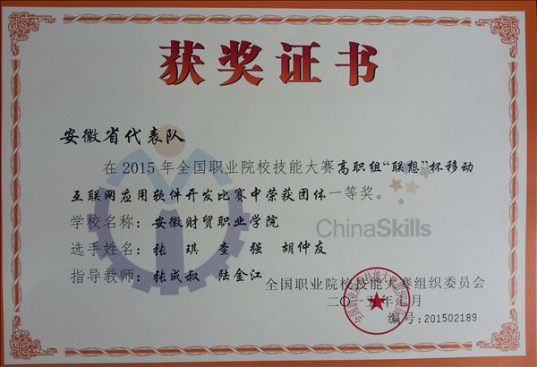 6月12日至14日,2015年全国职业院校技能大赛“移动互联网应用软件开发”赛项在山东科技职业学院举行。我院电子信息系软件技术专业张琪、查强和胡仲友3位同学组成的代表队喜获一等奖。