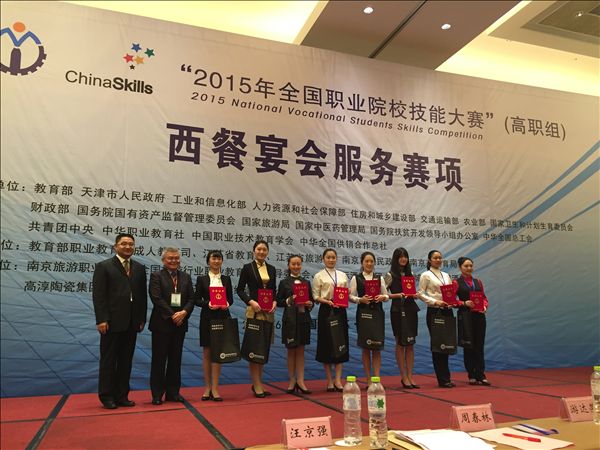 6月11日至13日,2015年全国职业院校技能大赛“西餐宴会服务”赛项在南京银城皇冠假日酒店举行。我院旅游管理系酒店管理专业学生程凯丽在该赛项中荣获二等奖。