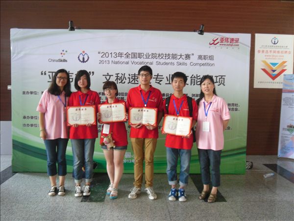 6月26至27日,2013年全国职业院校高职组“亚伟杯”文秘速录专业技能大赛赛项在天津职业大学举行,我院陈孝吾、张奕欣、陆雪莹和薛李昂等四位同学在胡芳、王勤老师的指导下,经过一天四场紧张激烈的比赛,最终取得了全国二等奖的优异成绩。