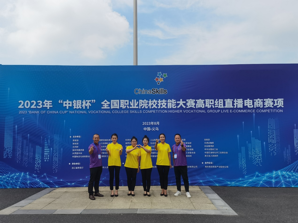 8月24至25日,2023年全国职业院校技能大赛(高职组)“直播电商”赛项在义乌工商职业技术学院举行。由成诚、许明星等教师指导的电商2001班叶潇潇、商数2001班徐杨晶晶、营销2101班王雨荷、营销2202班黄孙仪4人所组成的安徽省代表队荣获团体三等奖。