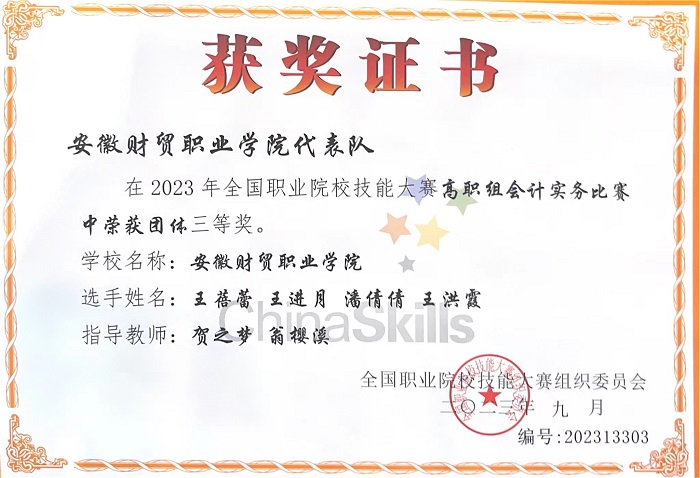 我校荣获2023年全国职业院校技能大赛(高职组)会计实务赛项团体三等奖
