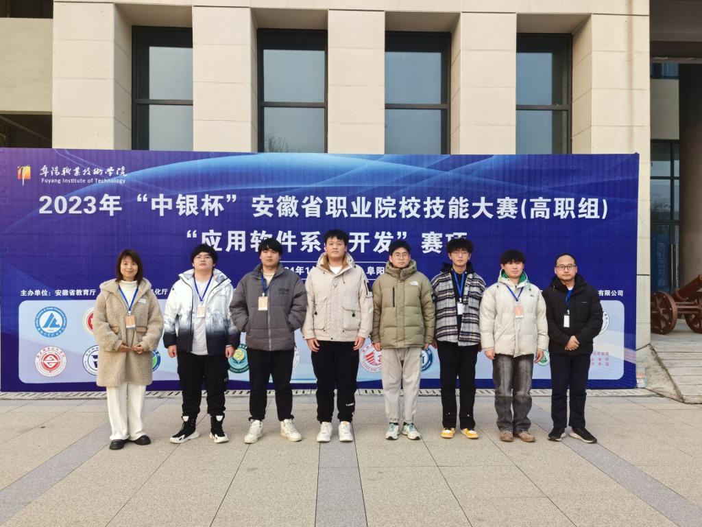 日前,2023年安徽省职业院校技能大赛(高职组)“应用软件系统开发”赛项在阜阳职业技术学院成功举办。经过连续6个小时的激烈角逐,由霍卓群、侯海平老师指导的徐畅、来晓璞、李玉杰团队以总分第2名的好成绩荣获团体一等奖,林宇,沈嘉昊,柯万春团队荣获团体三等奖。